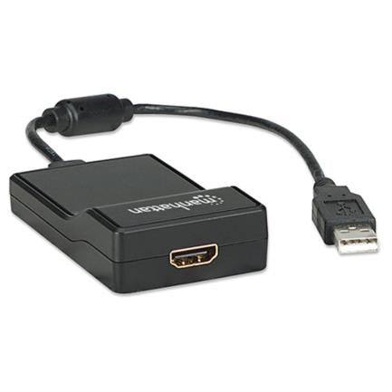 Convertidor Manhattan Video USB 2.0 a HDMI Color Negro